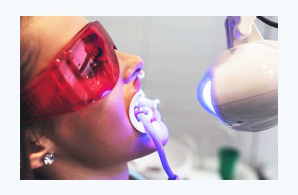 در روش دوم ابتدا دندانپزشک زیبایی ماده سفید کننده ای را بر روی دندان ها قرار می دهد و سپس با استفاده دستگاه های تاباننده نور عمل بلیچینگ دندان ها را انجام می دهد که گاهی نیاز به چندین جلسه می باشد تا نتیجه قابل قبول به دست آید لازم به ذکر است که بلیچینگ دندان در مطب سریع تر و مطمئن تر انجام می شود .